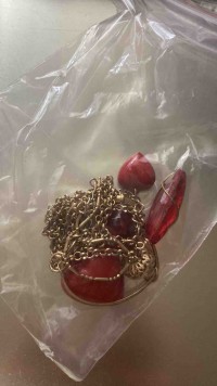 紅色愛心的項鍊,很特別,我覺得搭配簡單白襯衫與毛衣,這個季節特別適合,謝謝你的贈送。