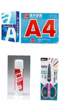 A4影印紙 A4護貝膠膜 口紅膠 剪刀 酒精