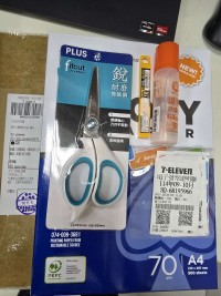 剪刀、美工刀片、電子秤、膠水、A4影印紙