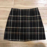 韓國購入 深藍格紋毛呢加厚A字裙 S