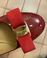 蝴蝶結🎀樣式的粗根高跟鞋.好可愛唷!漆皮質感超好.謝謝您大方的將其贈予我.感恩之情永存於心!💗