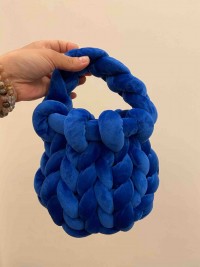 手作冰島毛線編織手提包 克萊茵藍(小)