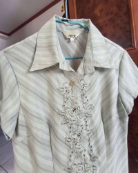 女夏淺灰綠色繡花蕾絲門襟套裝