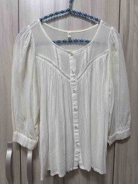 哈囉,妳好:我很喜歡棉麻的材質(跟純棉相比透氣許多),而且難得看到既是棉麻,又有設計感的衣服(袖子是公主袖、前面是娃娃衣的樣式,背面又有皺摺,OMG~細節滿滿),重點它還是個七分袖(我個人超愛七分袖的)Wow……我真的好喜歡、好喜歡呢!非常謝謝妳讓我當它的新主人,預祝聖誕節快樂,感恩!🙏