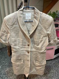 米白長版套裝外套