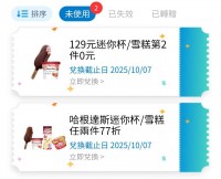全家優惠券 迷你杯/雪糕第2 件0元