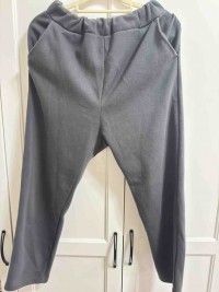 灰色直筒鬆緊棉褲