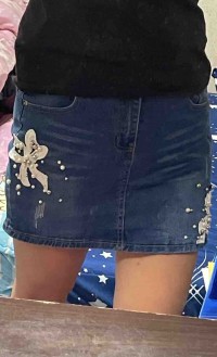 珍珠蝴蝶結牛仔褲裙