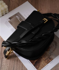 2way麻花編織背帶設計真皮馬鞍包 黑色