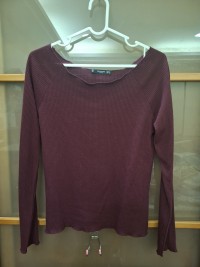 女裝|Mango酒紅色坑條薄長袖