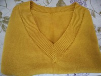 針織V領短版黃色的背心,質料很好喔~好穿搭還可讓膚色變白,謝謝您送我過年的新衣喔!太感謝啦!