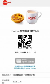(今日到期)肯德基蛋塔奶茶電子兌換券