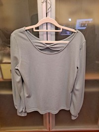 哈囉,妳好:這件衣服,造型很好看(背後的蝴蝶結、袖口的打折都好美),而且材質很柔軟、舒適好穿,後來才發現原來成份有7%的羊毛,幸好洗完後沒有拿去陽光下曝曬😅,謝謝妳的分享,預祝每天工作順利、愉快,感恩!
