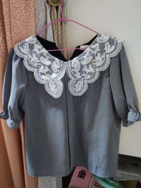 BELLA雷絲領上衣黑格