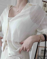 全新白色襯衫領網織洞洞衫