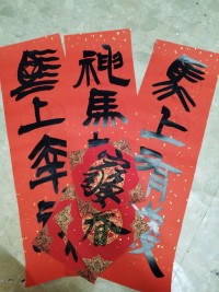 收到大師親手寫的春聯囉!😍😄🙏感覺年味提前到囉!