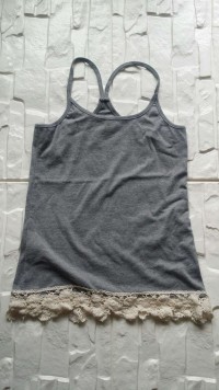 S-M 灰色棉質下擺圈圈蕾絲細肩帶小可愛