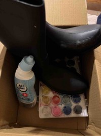 你好!收到贈物了!雨鞋和水彩和馬桶清潔等,感謝包裝寄送!