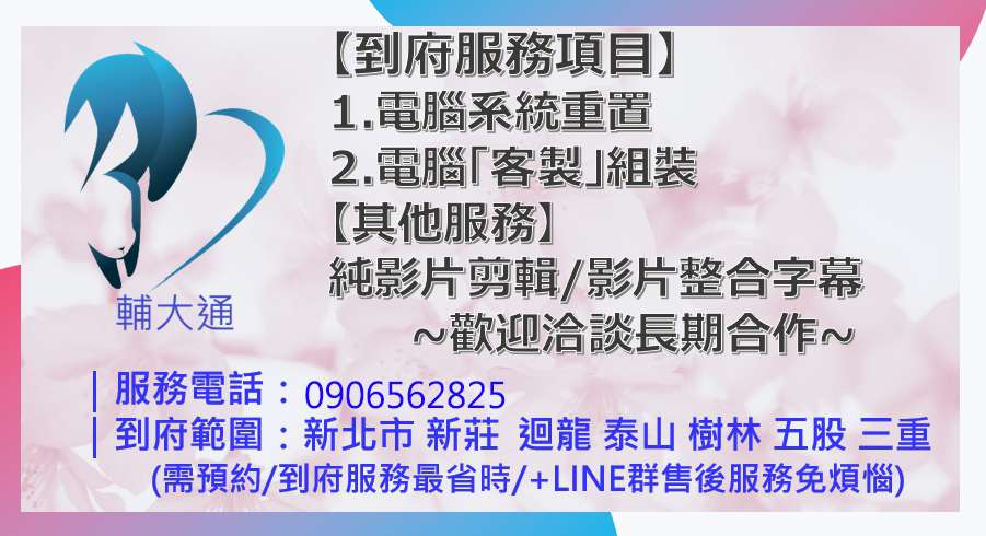 - youtuber影片後製剪輯(也可以新莊取檔)