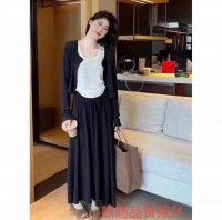 韓系春秋穿搭薄外套彈力背心長裙套裝