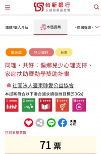 感謝您神聖的一票,讓我們的服務更添力量。 您的善舉不僅溫暖了孩子們的心,也鼓舞了我們前行的腳步。 願這份善念化作祝福,回到您與家人身邊,帶來平安、健康與喜樂。 因為有您,愛能繼續傳遞 💖