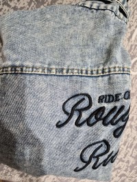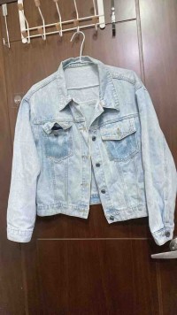 女設計款英文立體牛仔外套