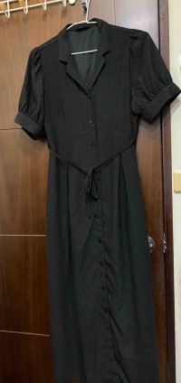 女Net黑色格紋休閒連身洋裝