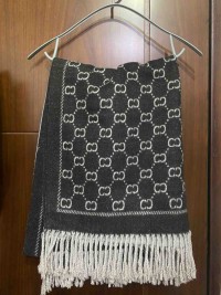 雙C雙面撞色羊毛流蘇圍巾披肩(黑