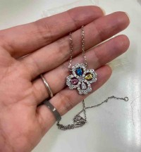 莫桑鑽 彩鑽滿鑽項鍊 18K白金