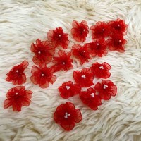 *手作材料*紅色紗質感花朵 裝飾花 裁縫