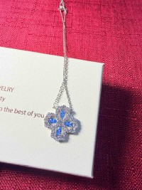 莫桑鑽海藍寶花鑽項鍊S925純銀