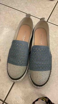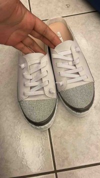 這雙鞋子會搭配襪子,綁帶穿剛好,前面有亮片閃閃的很特別,我很喜歡,謝謝您。