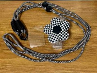 兩用式黑白手機繩-透明掛片與花朵彈簧夾
