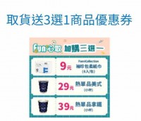 全家 取貨送3選1商品優惠券