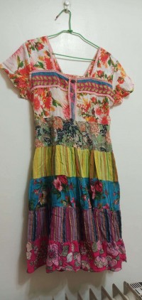 您好:這件洋裝,顏色好繽紛好飽滿,版型也很好看!穿起來很美.整個人都亮了起來😁真是非常感恩您把它送給我,我一定會好好珍惜它,祝您 順心如意 心想事成 福杯滿溢🥰