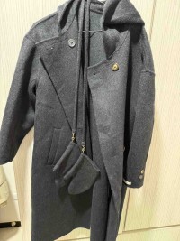 炭黑色100%羊毛連帽外套
