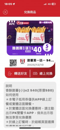 肯德基薯條買一送一