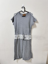 自行抽腰灰色蕾絲邊洋裝