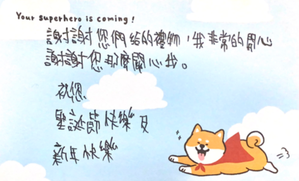 5.禮物預計於聖誕節前送達,公關部會於活動後邀請小朋友回寫卡片上傳給認領者。