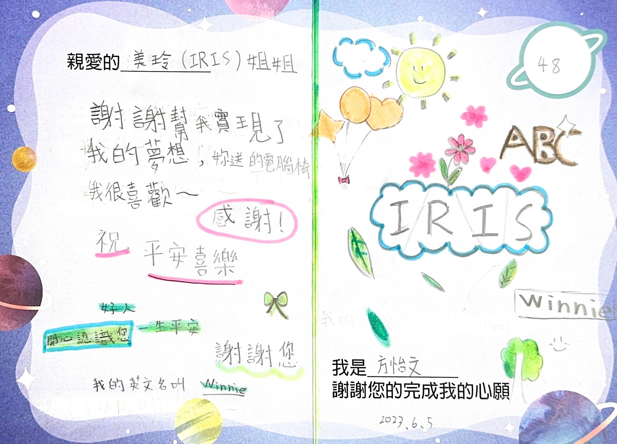 超級喜歡鳥類的怡文,家中養了許多可愛小鳥,未來也想成為鳥店老闆。怡文說,她想要一張可升降電腦椅當禮物,因為寫功課的時候,椅子高低如果不能調整很不好坐。