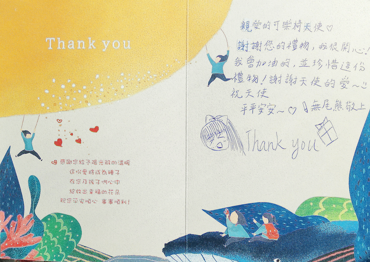 3.禮物於年底前,舉辦活動發放給孩子們,孩子們也將親手寫下感謝卡片,感謝愛心認領者。
