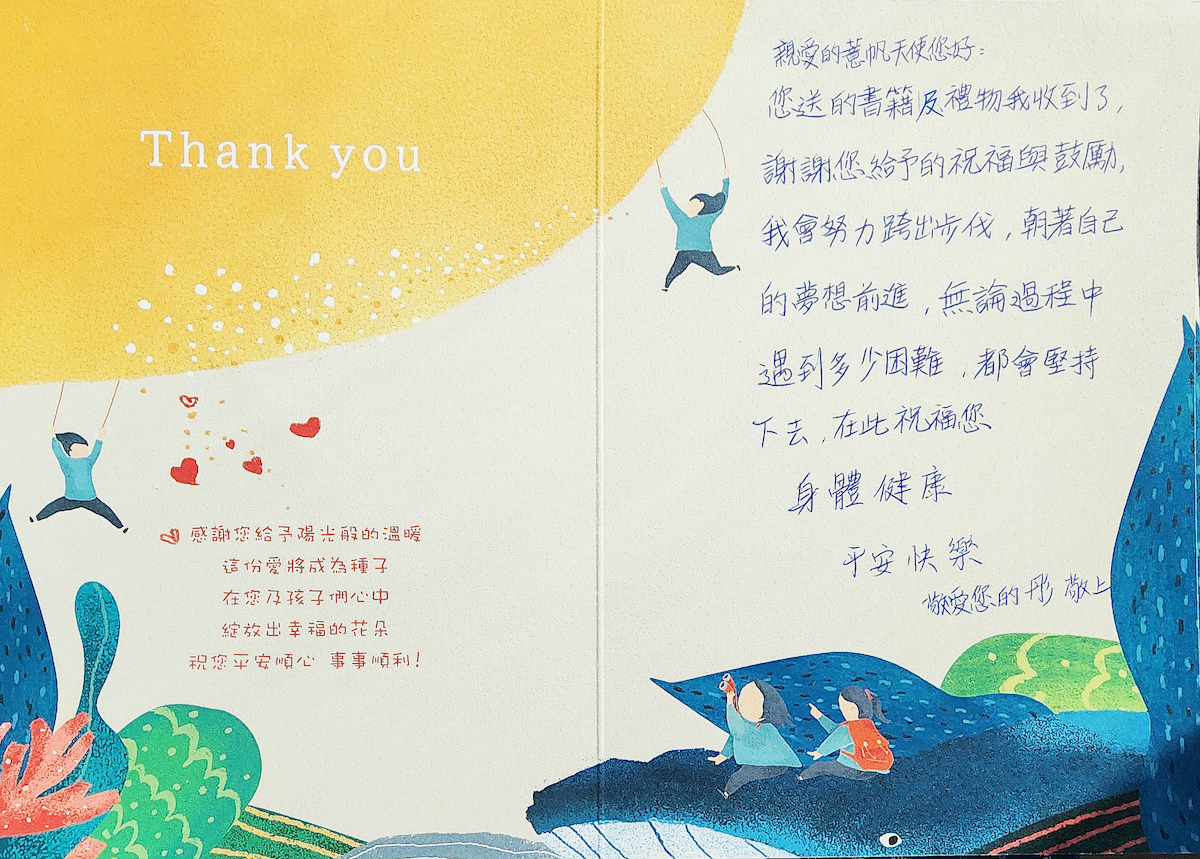 3.禮物於年底前,舉辦活動發放給孩子們,孩子們也將親手寫下感謝卡片,感謝愛心認領者。