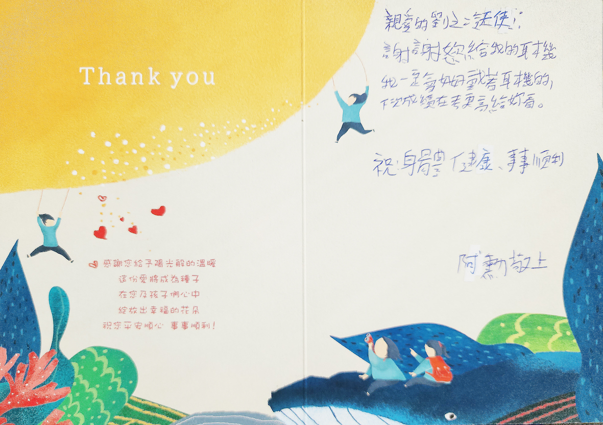 3.禮物於年底前,舉辦活動發放給孩子們,孩子們也將親手寫下感謝卡片,感謝愛心認領者。