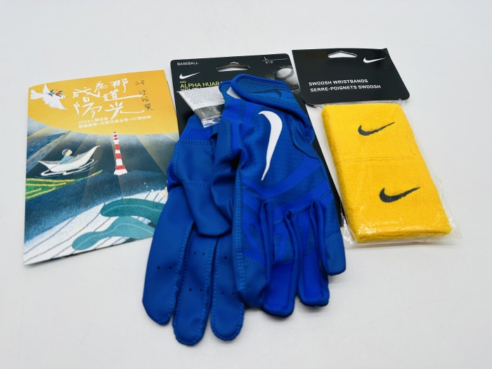 • 心願禮物NIKE黃色護腕(一雙)、NIKE藍色打擊手套(L號)