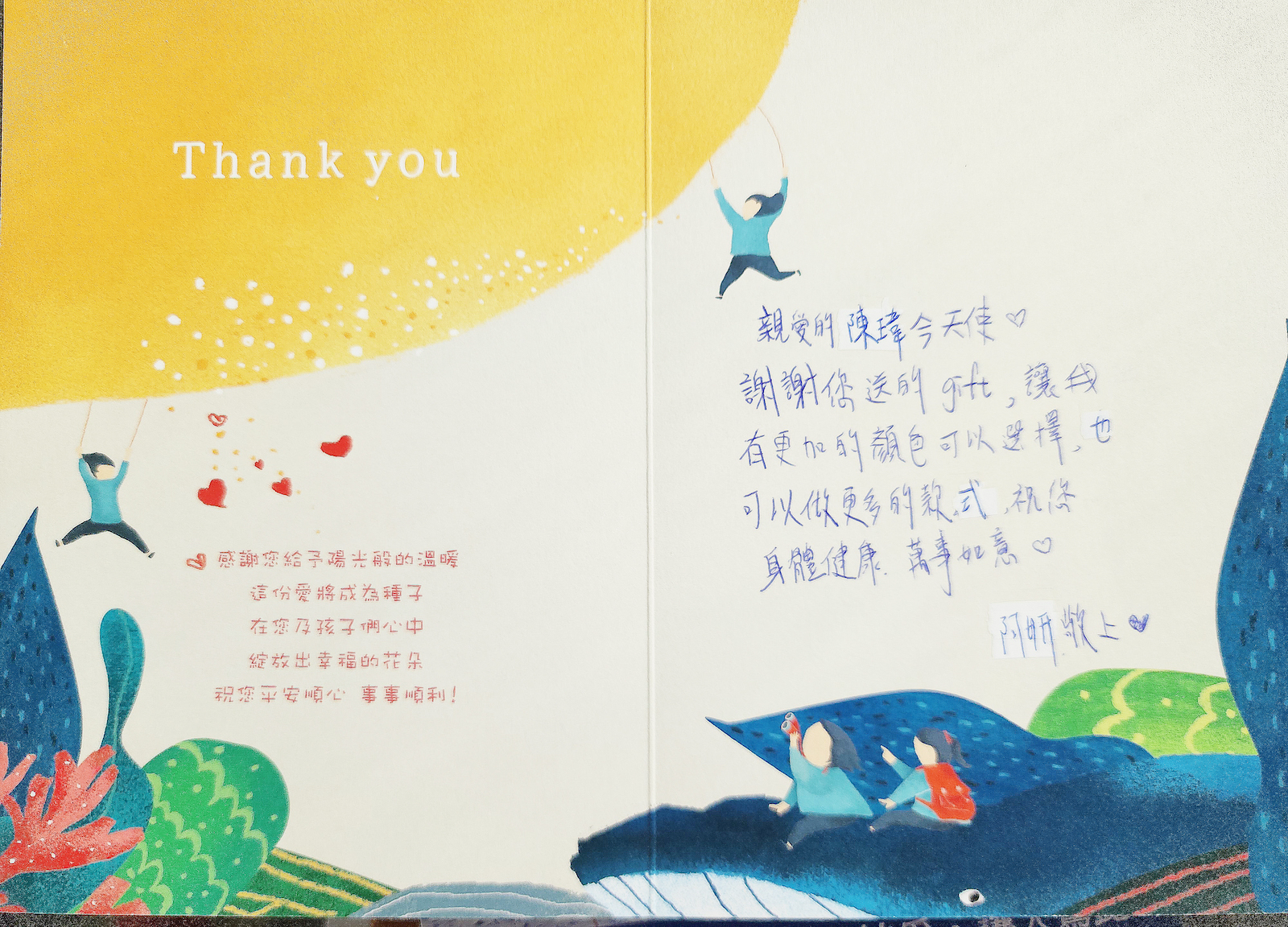 3.禮物於年底前,舉辦活動發放給孩子們,孩子們也將親手寫下感謝卡片,感謝愛心認領者。