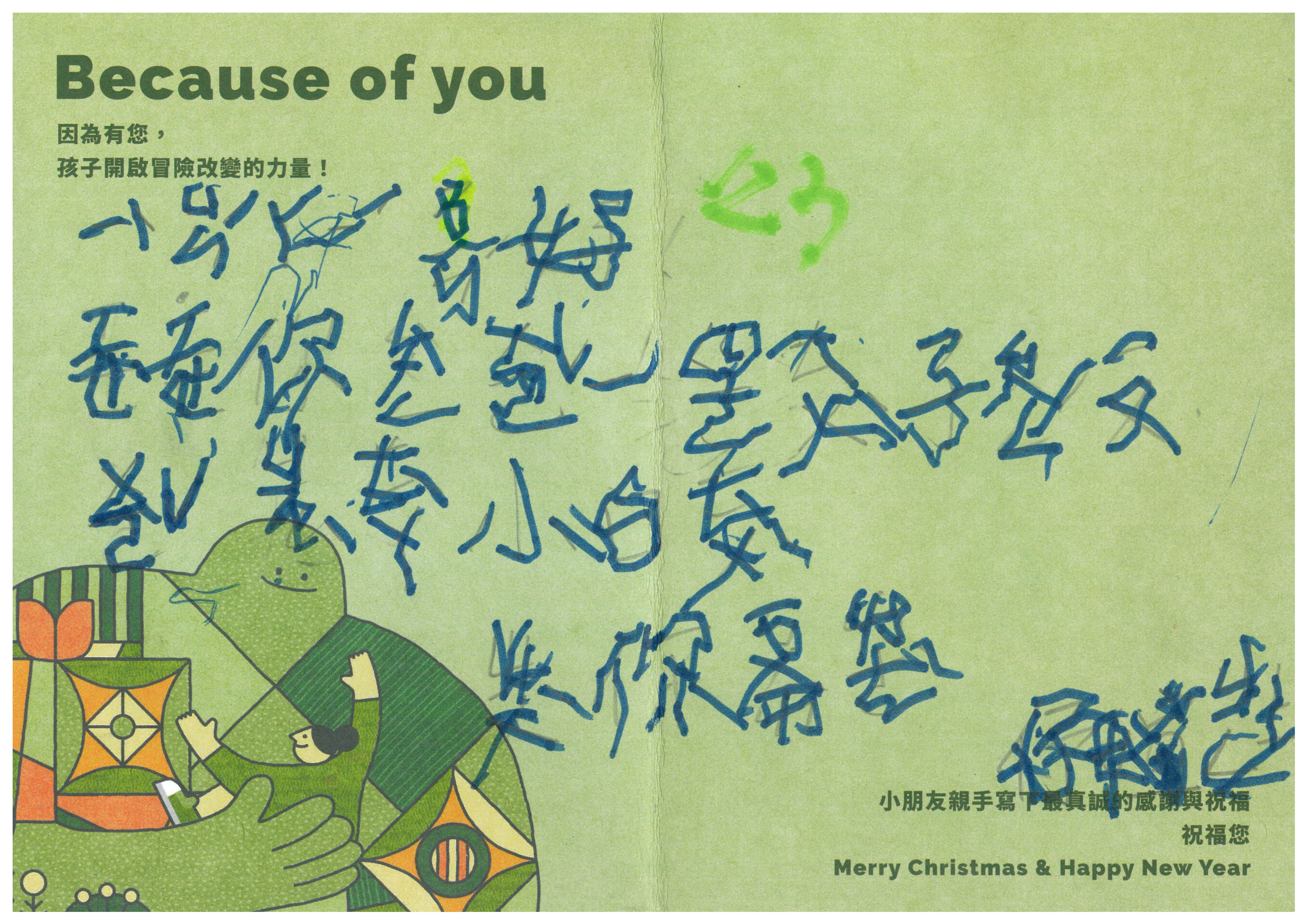 每份聖誕禮物內容:小朋友許下的心願禮物+親手寫下的鼓勵祝福卡片1張