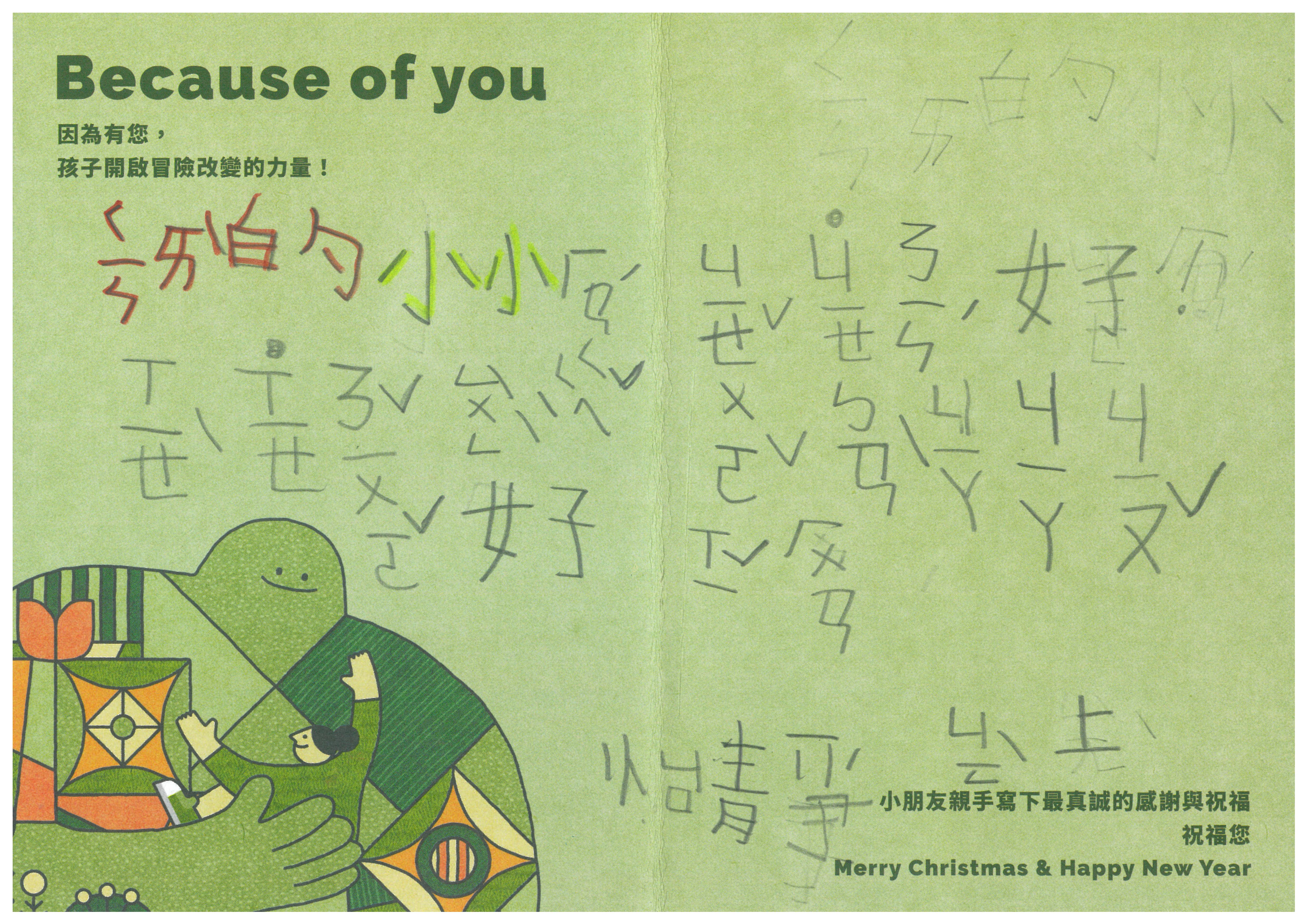 每份聖誕禮物內容:小朋友許下的心願禮物+親手寫下的鼓勵祝福卡片1張