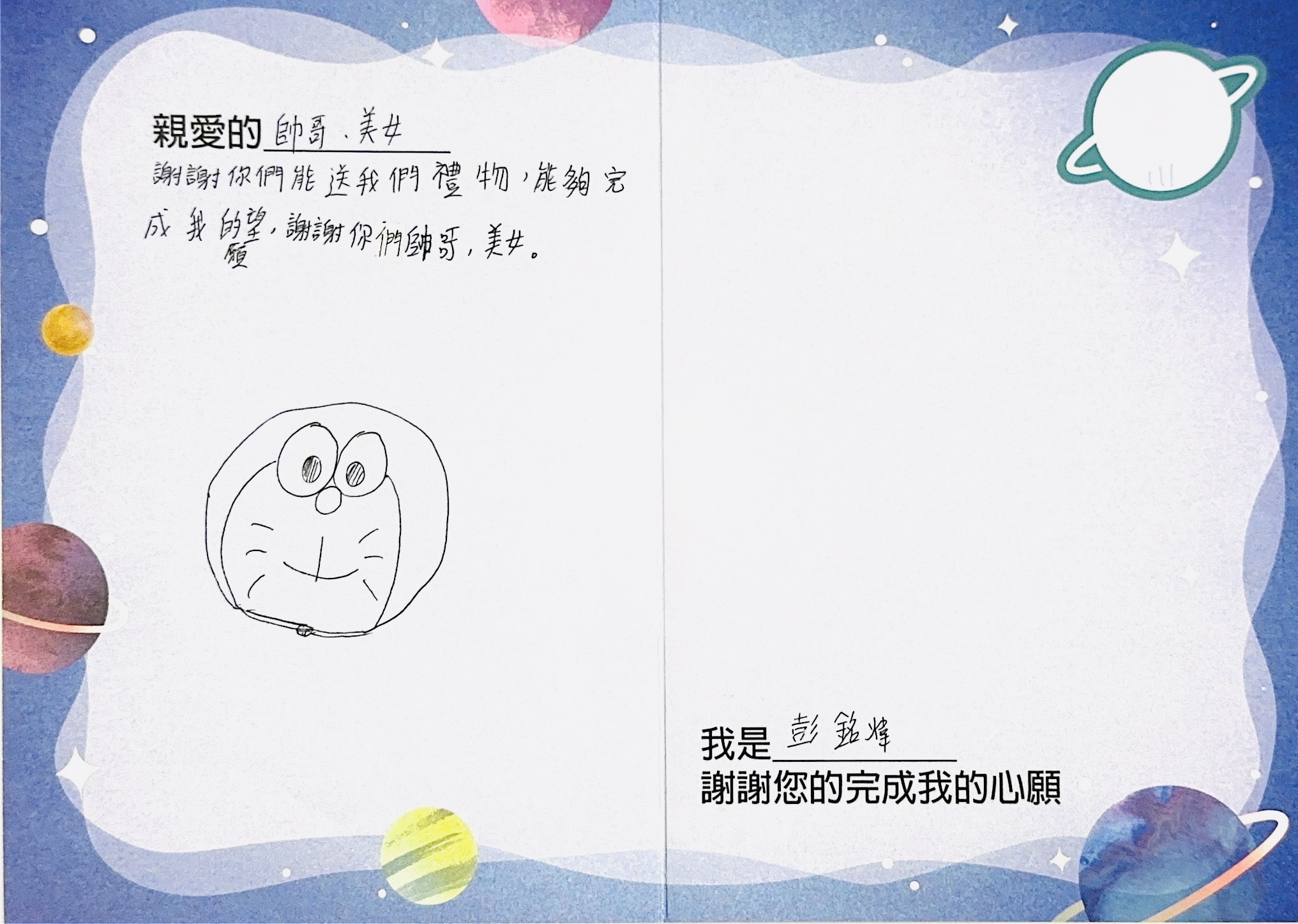 劉宗翰:您好,感謝您參與「2024大聯大愛心.圓夢計畫」活動,已將您的心意,發送到孩子的手上囉!為了將這一切永遠紀錄下來,我們將孩子給您的感謝卡片掃描成圖檔上傳至此,讓您可以回顧這一整個歷程。感謝您的愛心,未來也請您繼續支持大聯大愛心圓夢計畫。如有疑問,請teams Jun 徐嘉駿。