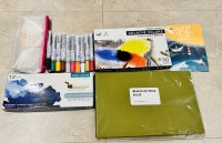 無毒性油漆筆(10色)、壓克力水彩顏料(12色)、水彩顏料(30色)、素描本(A4)