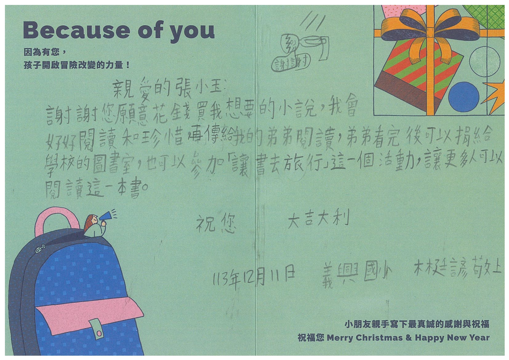 7.主辦單位寄發小朋友親手寫的感謝卡至資料地址